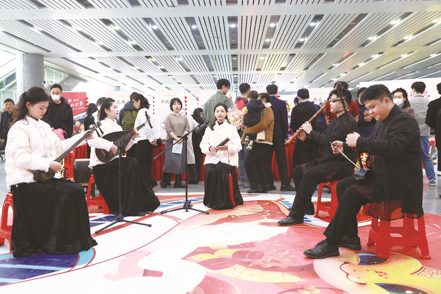南音表演艺术家为旅客热情表演(陈明/摄)