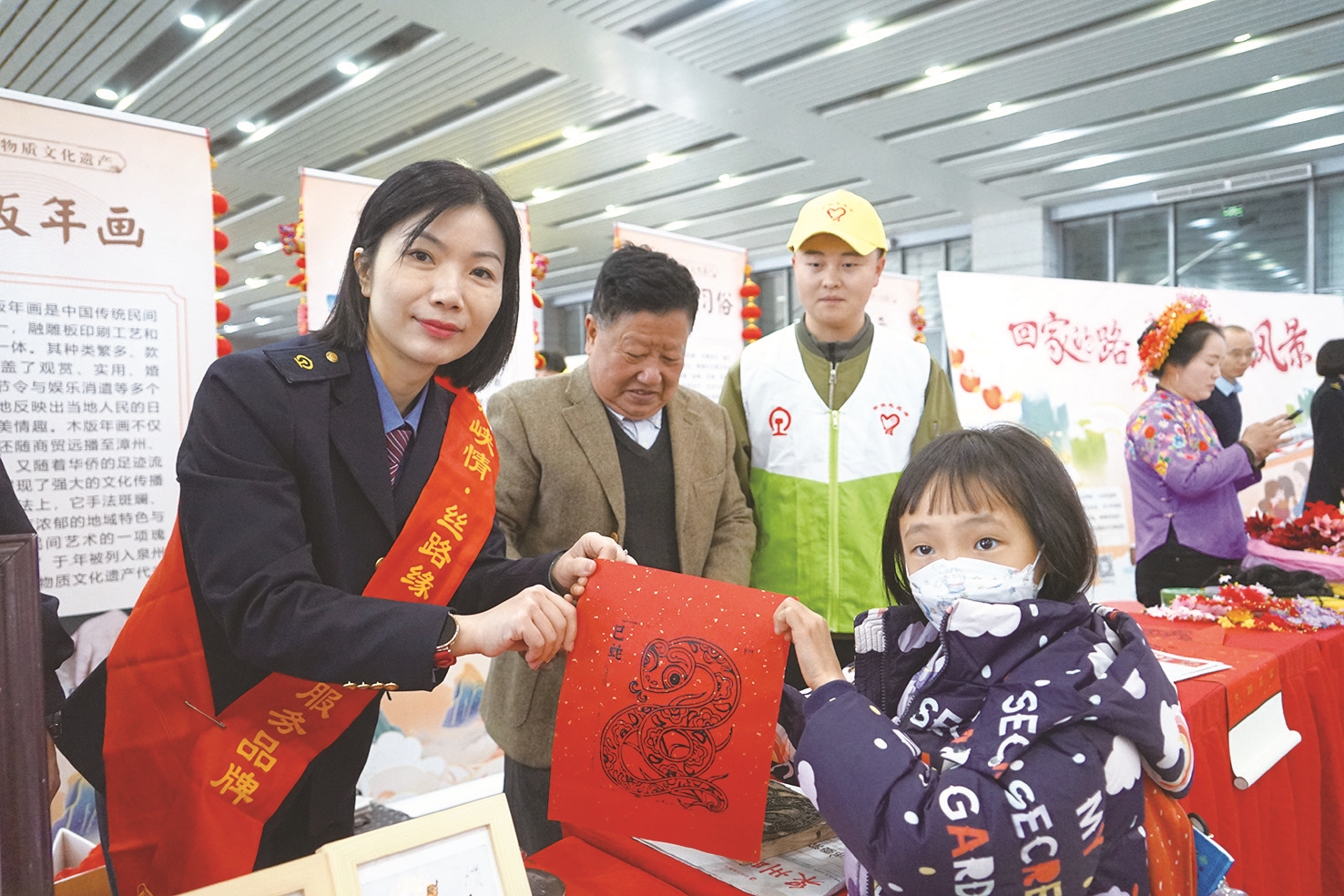 “这些春联写得挺好看的,马上要过年了,准备带回家贴在大门口。”家在龙岩的旅客钟女士现场领取了一副春联,满意地走向了候车区。