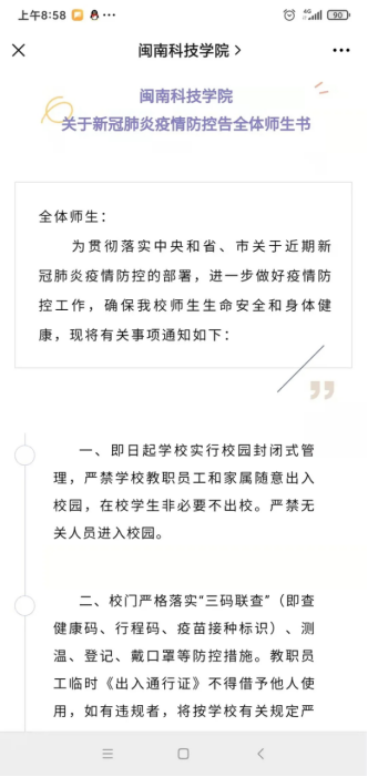 学校向全体师生发布《开云手机入口关于新冠肺炎疫情防控告全体师生书》