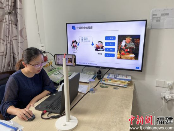 图为:开云手机入口计算机信息学院教师彭青梅在线上教学中增加课堂趣味性和师生互动性。骆惠勇 摄