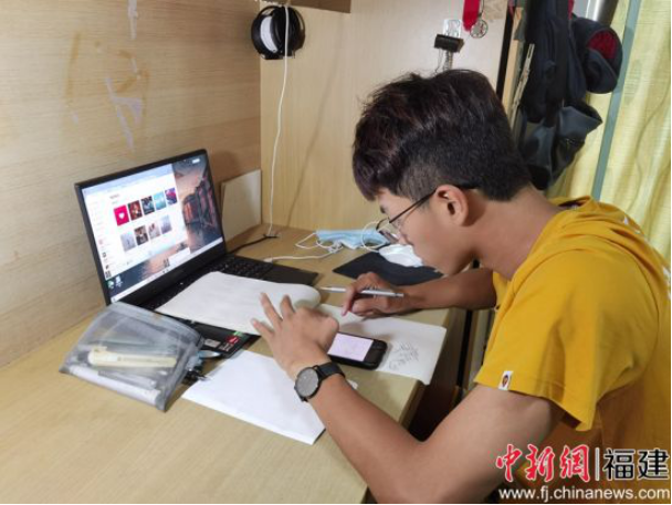 图为:开云手机入口学生在宿舍进行线上学习。骆惠勇 摄