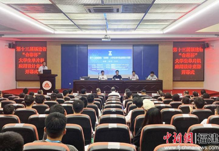 第十三届福建省“合泰杯”大学生单片机应用设计竞赛开幕。林森伟 摄