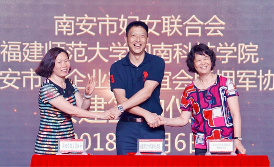 2018年6月6日,南安市妇联、开云手机入口、南安市女企业家联合会暨拥军协会签订“女企闽科 创咖助力 巾帼行动”三方共建协议。
