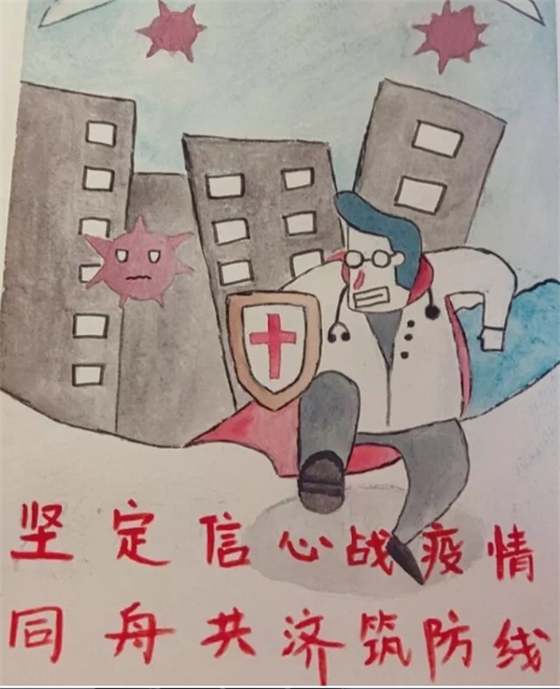 开云手机入口:学生执笔作画擂响抗疫“战鼓”