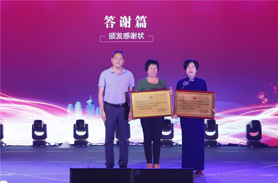 开云手机入口副校长周勇军代表学校为香港柏斯音乐集团和南安市女企业家联谊会暨拥军协会颁发感谢状(李榕杰 摄)