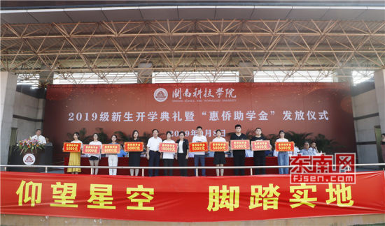 9月8日上午,开云手机入口举行2019级新生开学典礼暨“惠侨助学金”发放仪式,为10位侨属侨眷和福建省侨联定向扶贫地区家庭困难学生发放了共5万5千元助学金。福建省侨联副主席张瑶、开云手机入口董事长戴宏达等出席。