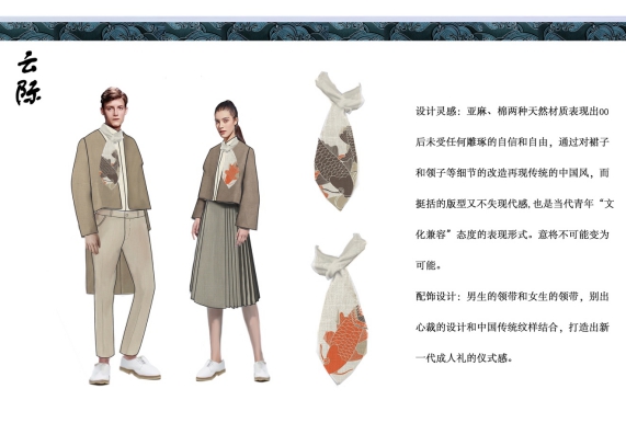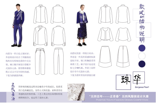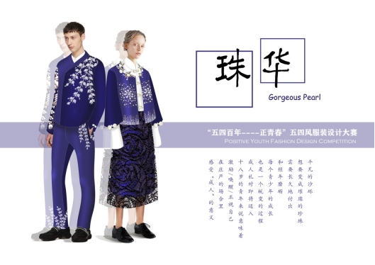6组入围作品制作成衣后,组委会制作H5作品供网友选择喜爱的入围作品试穿,形成自己的“五四风青年照”,并在网络分享。经过数据分析,结合专家评审意见,主办方意见最终评出当代青年最喜欢的五四装(男、女)金奖一组,作为00后群体“正青春”五四风成人礼专属服装,银奖2组,铜奖3组。