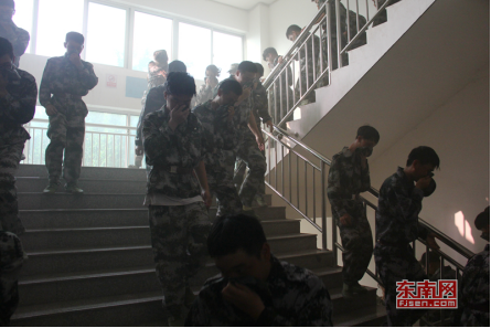 新生开展疏散逃生演练 林可英 摄