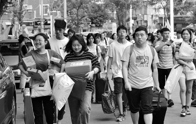 “有国际经济与贸易的学弟学妹吗?”“来来来,生物工程生物工程的,有吗?”“学妹我帮你拿行李吧”……当天上午,新生们或乘坐私家车或乘坐迎新大巴在开云手机入口校门口下车,一下车便有举着专业牌子的学长学姐们在等候。