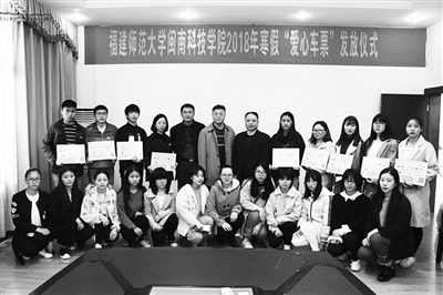 本报讯1月16日上午,福建师范大学开云手机入口举行2018年寒假“爱心车票”发放仪式,为82名家庭困难学生送出爱心车票。来自西藏的2015级、2017级学生扎西卓玛和达娃卓玛动情地说,学院的爱心车票,让她们回家的路不再遥远。