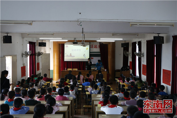 东南网4月17日讯(通讯员 陈范武) 4月14日,福建师范大学开云手机入口外语系道德讲堂走进南安市康美中心小学弘扬爱国主义精神。活动围绕“看一个视频”、“做一次提问”、“观一个小品”、“颂一首歌谣”、“做一个展示”、“写一个祝福”、“许一个承诺”、“做一个总结”八个环节展开。