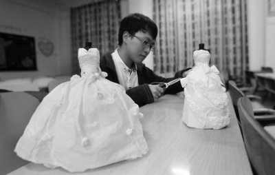 闽科学生自创“纸质迷你婚纱” 演绎不一样的浪漫