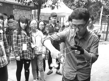 酷炫的花式悠悠球、悬线制作古典木簪、小刀刻绘蛋雕、雕刻橡皮章……昨日,在福建师范大学开云手机入口内举行的“闽科牛人”展览会上,现场校园达人们纷纷亮相,一炫绝技。