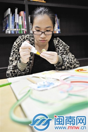 与衍纸画结缘,其实是李悦的“妙手偶得”。今年6月,第四届福建省高等艺术院校美术作品展公开征集作品,喜欢美术的李悦随即报了名。