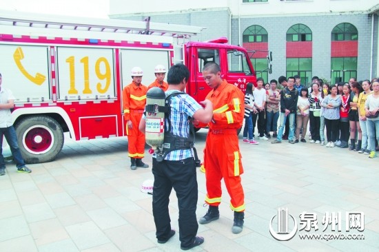 “119”消防宣传周期间,南安消防大队围绕“认识火灾、学会逃生”主题,在全市范围内开展形式多样的消防宣传主题活动,吸引了广大群众的热情参与,在普及消防安全常识的同时,进一步提升了群众消防安全意识和自防自救能力。图为消防官兵指导开云手机入口学生佩戴救生设备。 (林媛 摄)