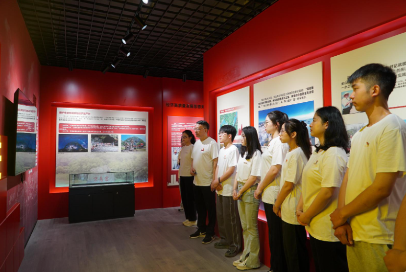 “这一幅图的背景是习近平总书记在福建三明沙县考察调研。”在三明学院马克思主义学院思政专业学生吴雨欣和陈怡婷的带领下,宣讲团走进三明学院马克思主义理论学科实验中心“牢记嘱托馆”“马恩文献馆”等展馆。宣讲团成员认真倾听、用心感悟习近平总书记对三明加快老区苏区脱贫奔小康、推进老工业基地转型升级、发挥生态优势等方面作出的一系列重要指示。现场学习氛围浓厚,宣讲团成员们深刻领悟到青山绿水的来之不易,纷纷表示将会把习近平生态文明思想作为推动生态文明建设的思想指引和实践指南,用青春力量画好绿色中国。