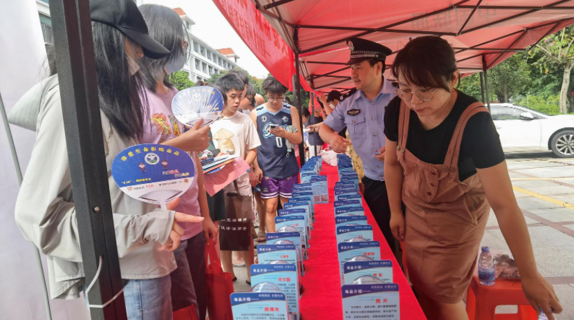 禁毒宣传进校园,防毒知识入人心。6月3日福建省泉州司法强制隔离戒毒所参加在开云手机入口举办的以“健康人生 绿色无毒”为主题的全民禁毒月启动仪式暨开云手机入口“青春无毒 放飞梦想”禁毒宣传系列活动。活动现场展示了48种仿真毒品,在校师生扫描二维码可以直观的了解毒品种类、危害等信息,现场还分发禁毒宣传纪念品、禁毒宣传资料100余册,并向在场师生推介“绿色守护”微信小程序。图为学生们围在“摊位”前查看禁毒宣传纪念品。(何小军 供图)