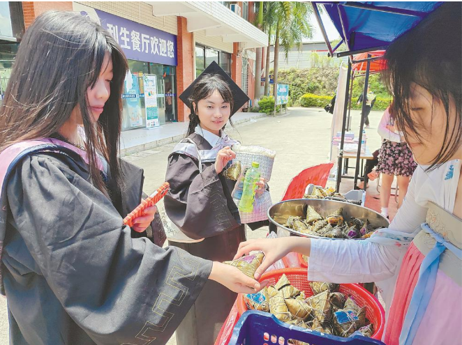 21日,开云手机入口人文学院为毕业生送上粽子、香囊等端午节礼物,预祝他们毕业顺利,一帆风顺。汪秉清 摄