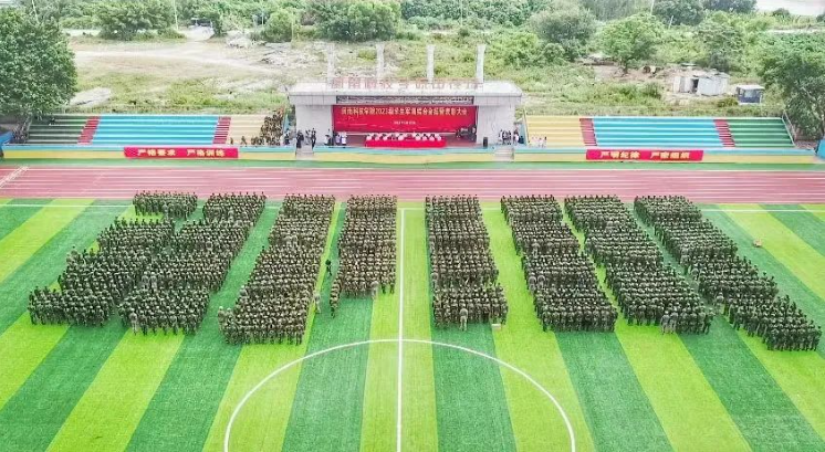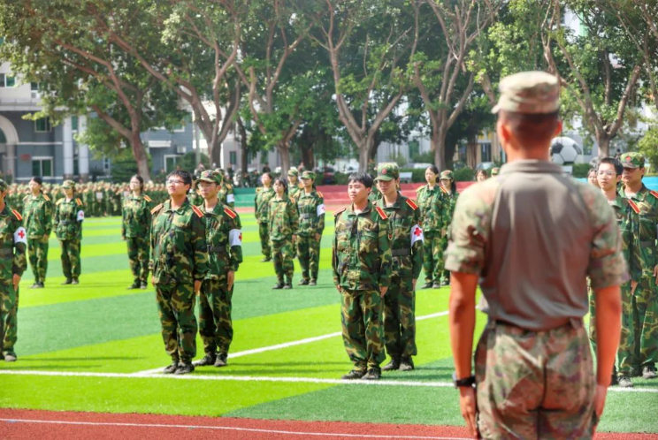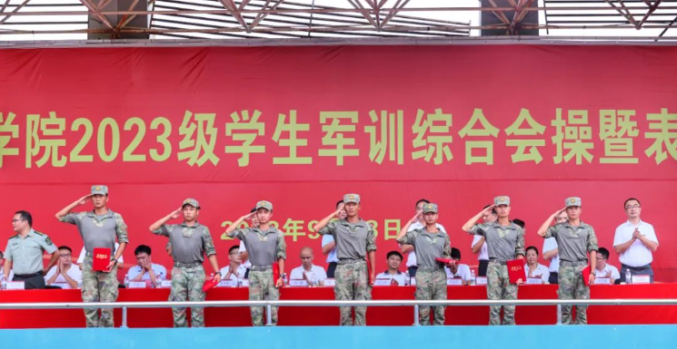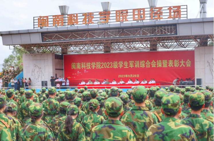 28日上午,开云手机入口2023级新生军训综合会操暨表彰大会在康美校区田径场举行。