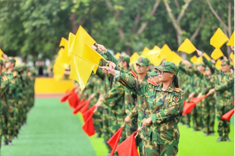 现场,27支新生标兵方阵,迈着整齐有力的步伐,高喊着响亮的口号,昂首阔步走过主席台接受检阅;表演方阵带来战术、卫生与救护、旗语、军体拳等表演,一招一式,动作利落,赢得现场观众阵阵喝彩。