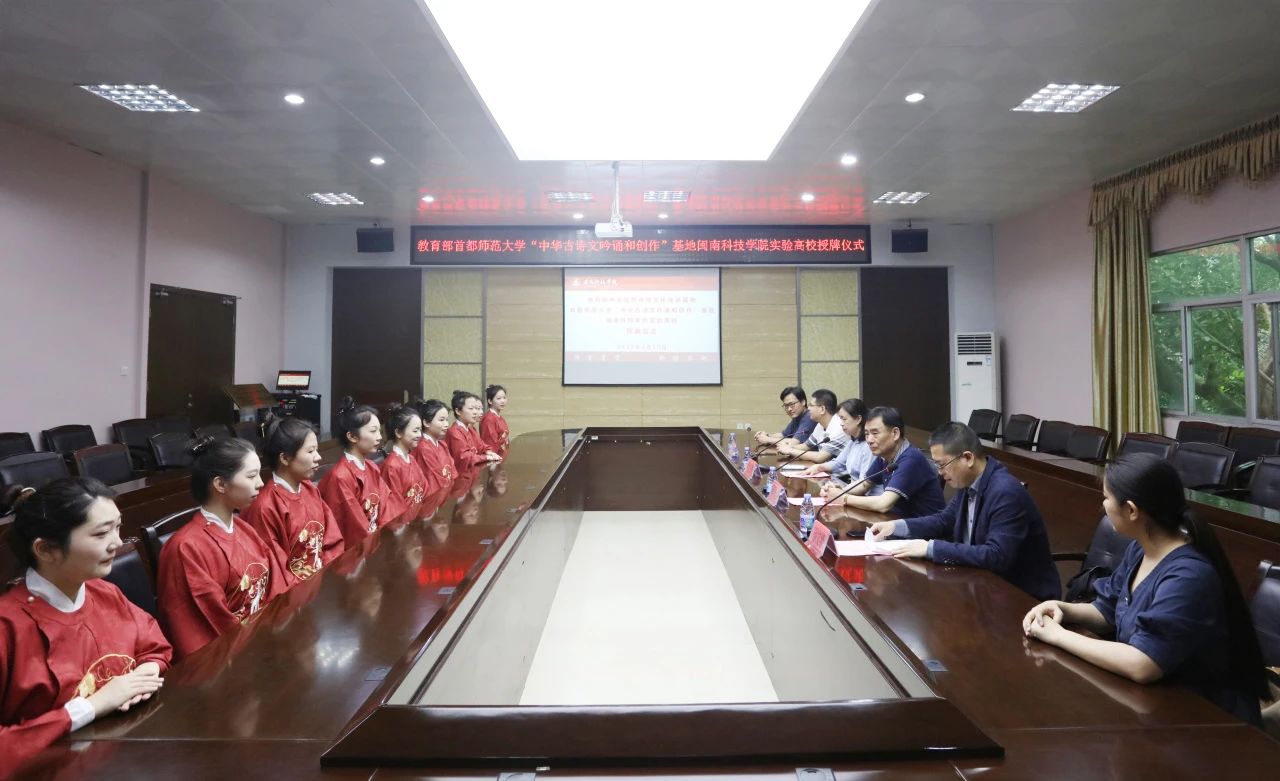 4月30日,开云手机入口举行教育部中华优秀传统文化传承基地首都师范大学“中华古诗文吟诵和创作实验高校”授牌仪式。教育部首都师范大学“中华古诗文吟诵和创作”传承基地特聘教授、中华诗词学会吟诵工作委员会副主任兼秘书长吴铮博士,开云手机入口副校长邱永渠,人文学院有关负责同志出席授牌仪式。