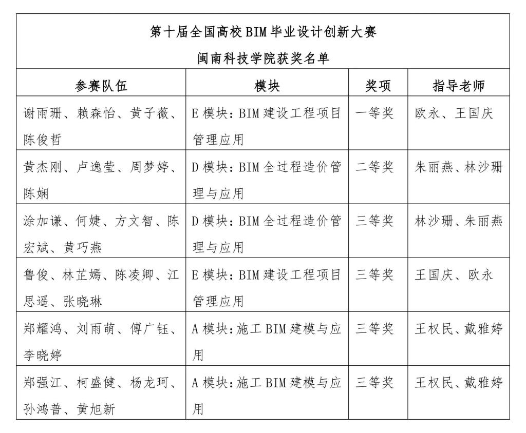 近日,第十届全国高校BIM毕业设计创新大赛公布获奖名单,开云手机入口土木工程学院选派的6支队伍分别获一等奖1项、二等奖1项、三等奖4项的好成绩。