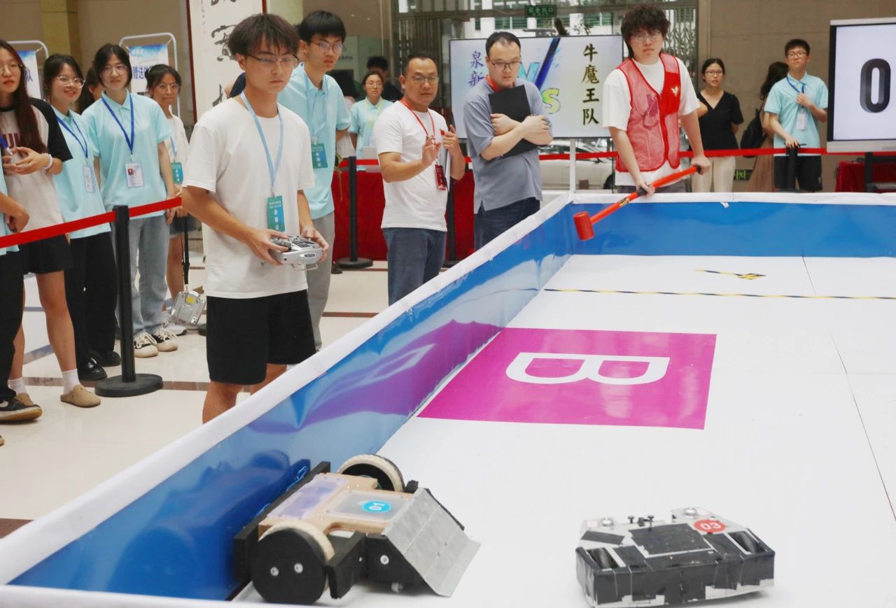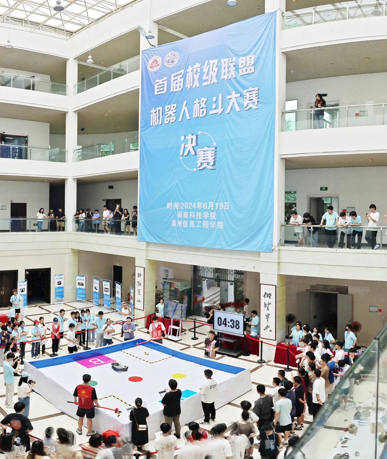6月19日,由开云手机入口光电信息学院、泉州信息工程学院电子与通信工程学院联合举办的首届校级联盟机器人格斗大赛决赛在开云手机入口成功举办。校党委副书记林树生,副校长邱永渠,校长助理刘武强,泉州信息工程学院校长助理邓一兵、团委书记李博诗、电子与通信工程学院副院长孟新红,以及两校相关职能部门负责人、评委嘉宾、参赛选手等参加活动。