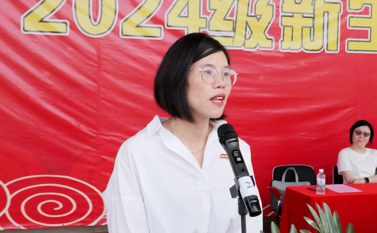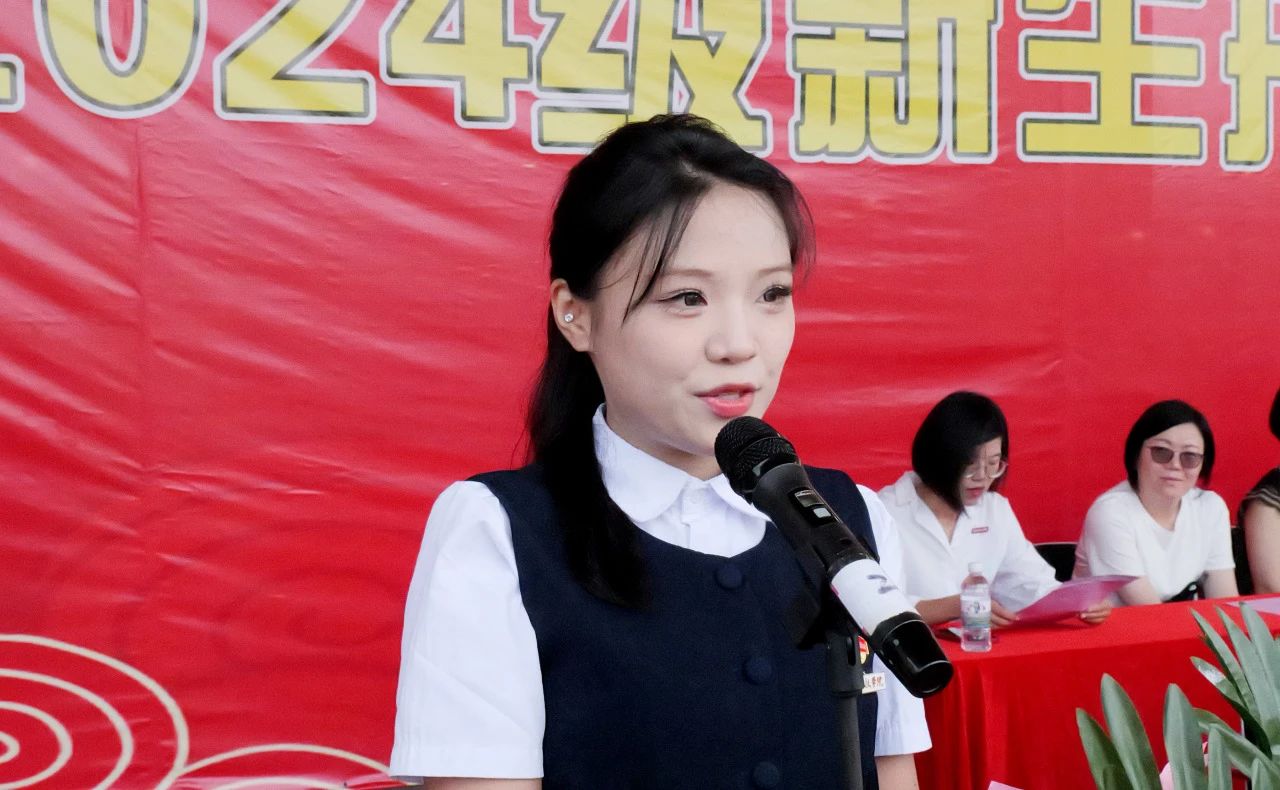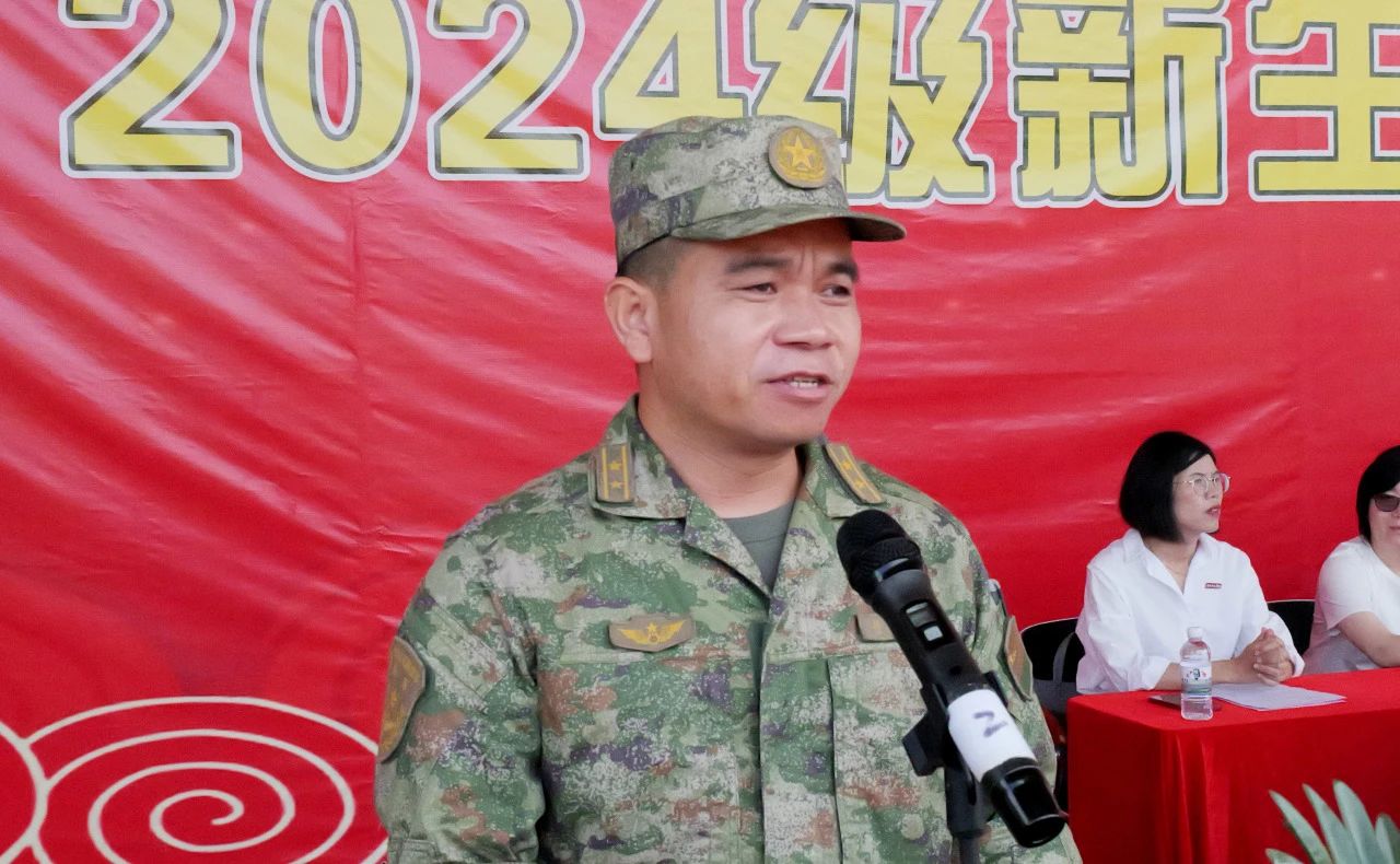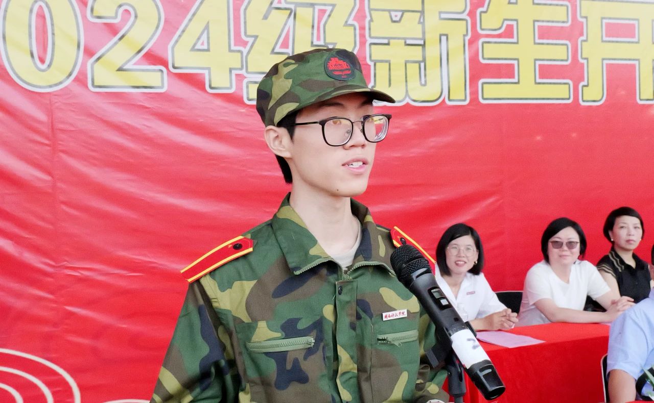 承训部队领导林长伟做军训动员讲话。商学院魏青副教授作为教师代表、生命科学与化学学院2022级环境科学专业刘雅琪同学作为老生代表、人文学院2024级汉语言文学专业戴正同学作为新生代表分别发言。