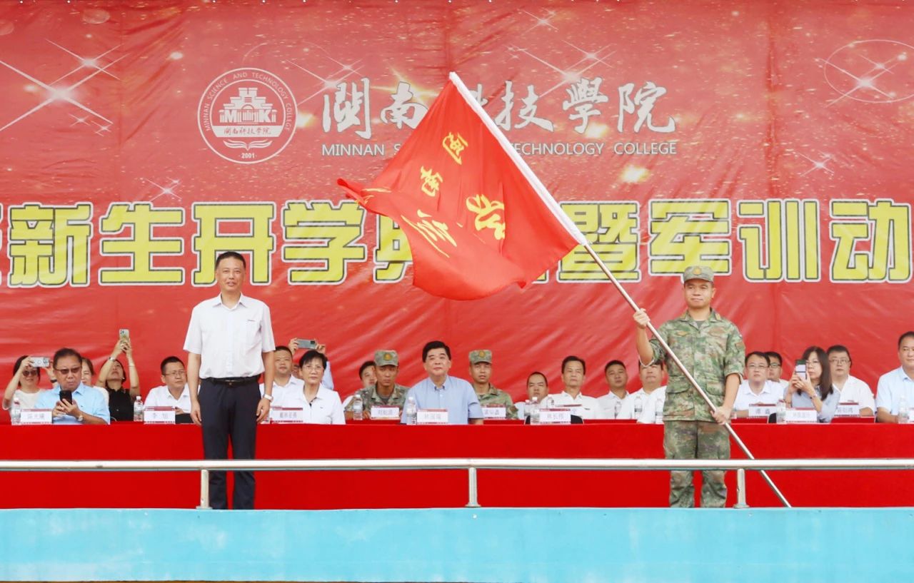 9月15日上午,开云手机入口2024级新生开学典礼暨军训动员大会在康美校区隆重举行。军训承训部队中校政治教导员林长伟、上尉参谋刘航波、中尉排长黄华鑫,学校董事长林国端、法人代表戴林亚燕、原副董事长陈光曦,校领导游小波、李旭、周勇军、林树生、邱永渠,校长助理刘武强,行政职能有关部门负责人,各二级学院党政主要负责人出席典礼,2024级新生、新生辅导员及师生代表参加典礼。典礼由校党委副书记林树生主持。