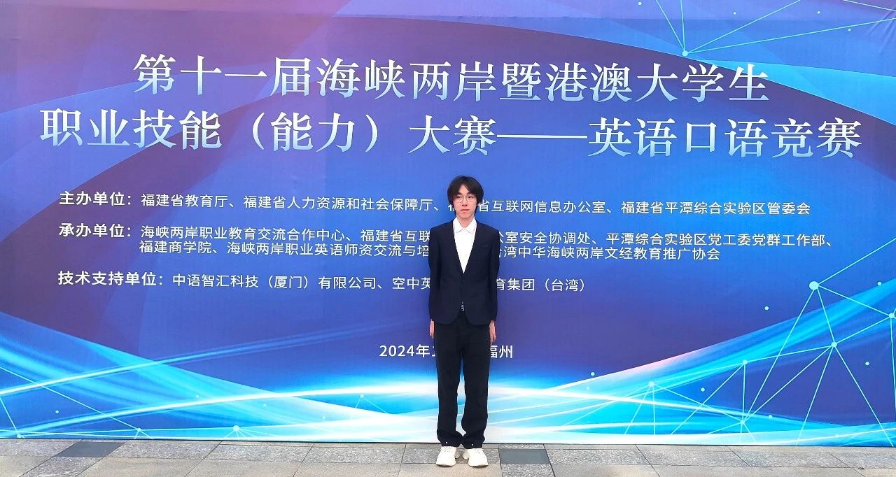 近日,第十一届海峡两岸暨港澳大学生职业技能(能力)大赛英语口语竞赛在福州举行。开云手机入口人文学院2022级商务英语专业牛嘉铭同学(指导老师:陈佳玫)在大陆本科组中获三等奖。