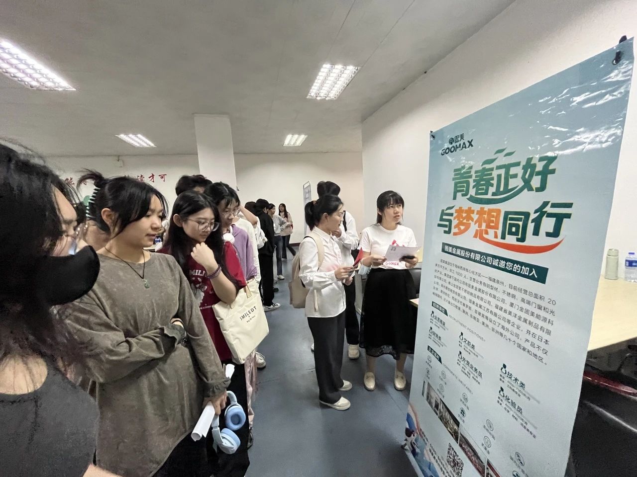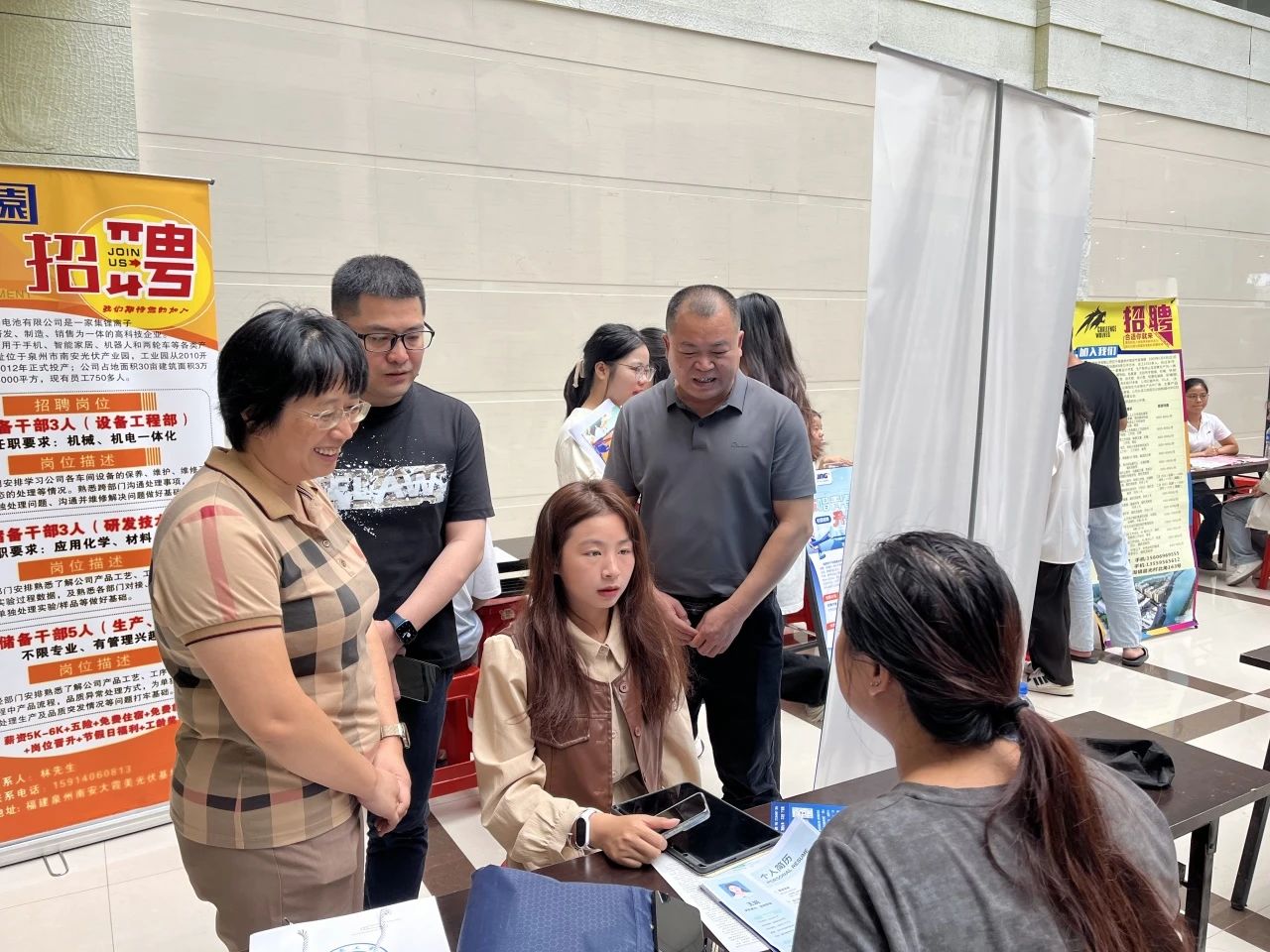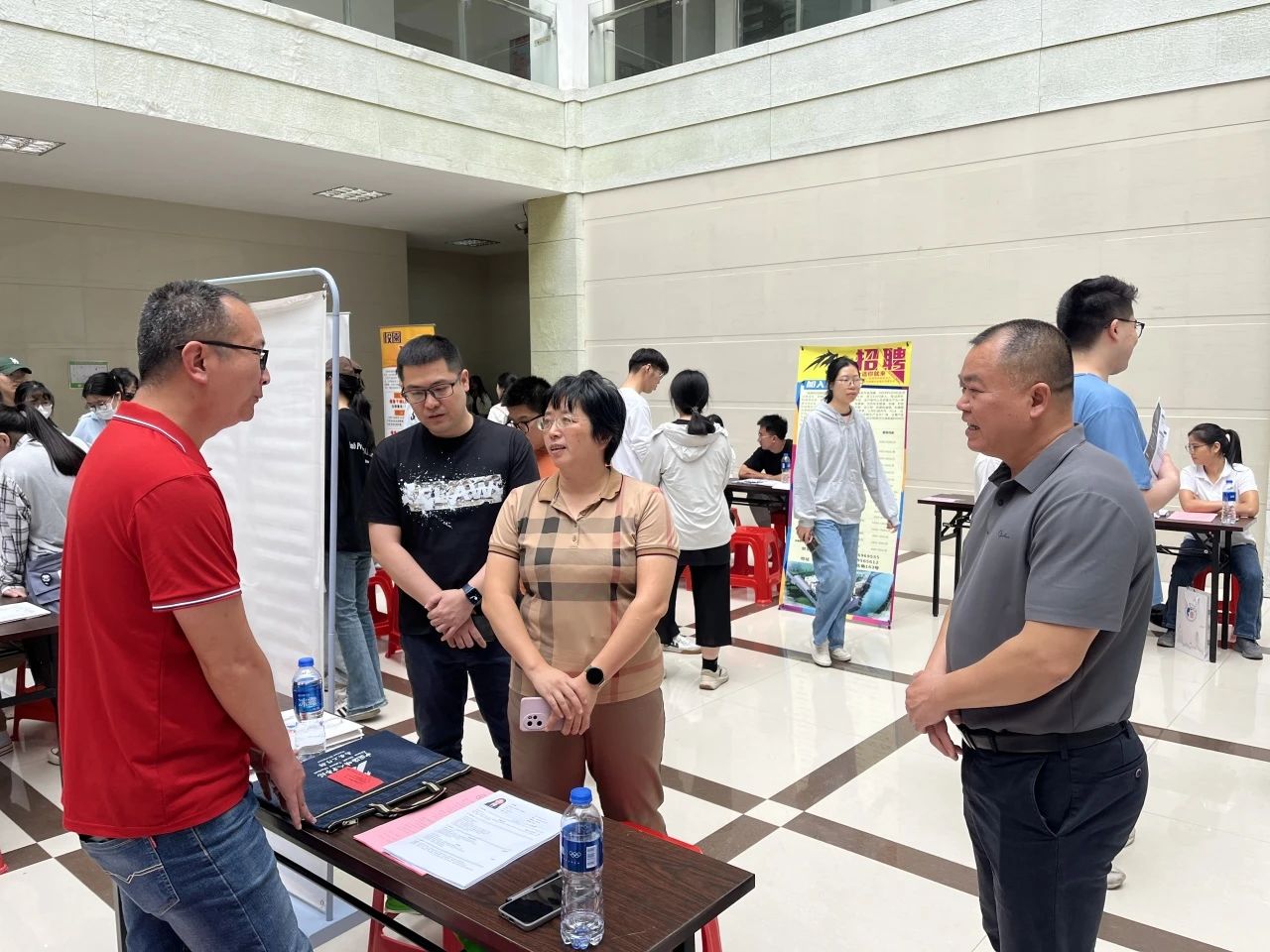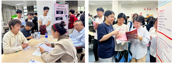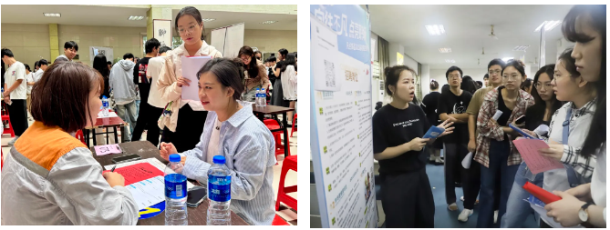 “未来职场的发展晋升空间是怎么样的?”“工作内容是否以实践操作为主?”……招聘会现场气氛热烈,参会企业展位前人头攒动。毕业生踊跃投递简历并就自己关心的招聘岗位、薪酬期望、职业发展前景等与用人单位进行充分洽谈;用人单位通过展板、海报及现场讲解等形式,详细介绍企业文化、招聘岗位、晋升渠道等,吸引了大量毕业生驻足交流。