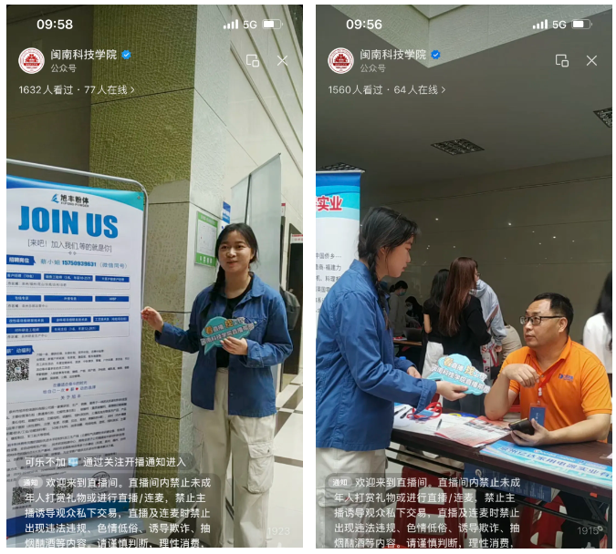 招聘会以“现场招聘+直播带岗”的形式,线上线下同步进行,通过“开云手机入口”微信视频号直播带岗,帮助毕业生快速了解用人单位,精准搜集岗位信息,促进毕业生与企业的实时互动。
