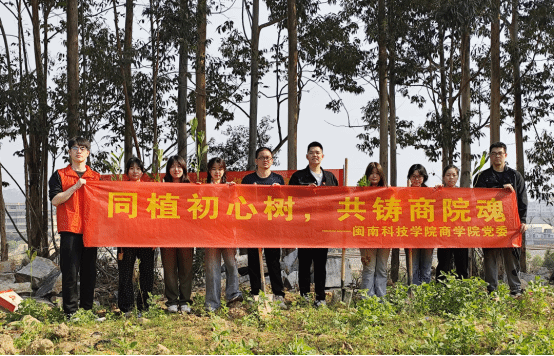 3月11日,商学院学生第三党支部开展“同植初心树,共铸商院魂”主题党日活动。13名师生党员联合兰田村干部群众,有序完成挥锹铲土、扶苗填坑、提水浇灌,一起种下成片希望的小树苗,彰显青年大学生的社会责任感和使命感,推动环保理念与奉献精神在实践中生根发芽。