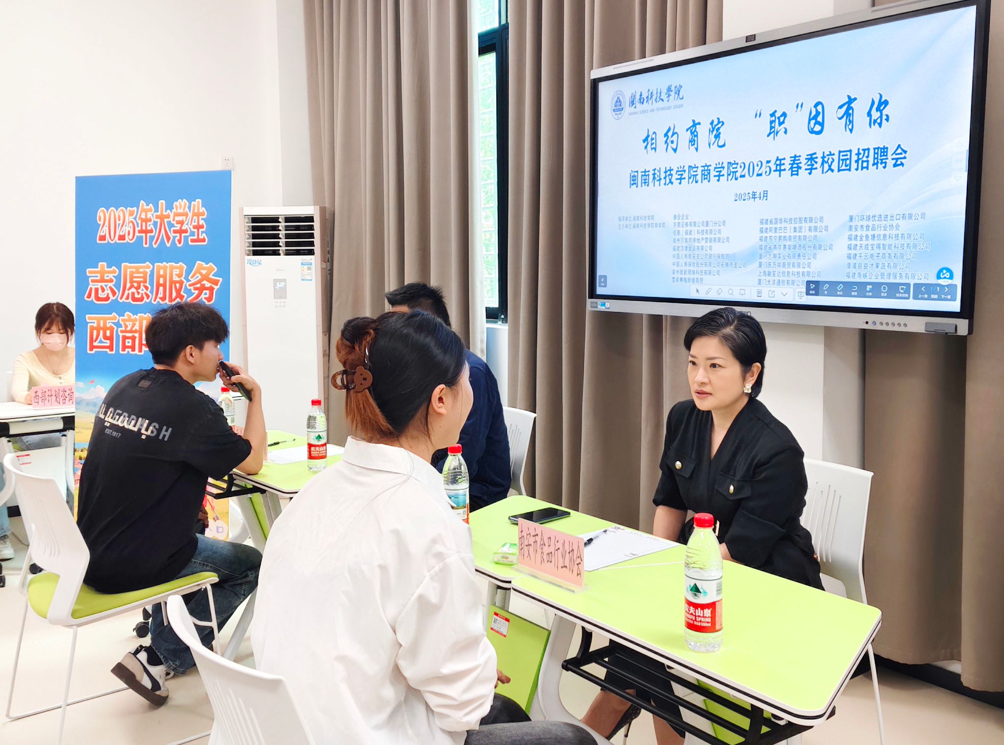 此次招聘会吸引了东莞证券有限公司厦门分公司、信泰(福建)科技有限公司、泉州贝客邦房地产营销有限公司、福建顶津食品有限公司、中国人寿南安支公司银行保险部等23家企业前来招聘,提供外贸业务员、市场推广专员、电商储备干部等与我院专业匹配的相关行业岗位86个。经过招聘会当天供需双方的交流和相互了解,现场达成初步意向学生76人。