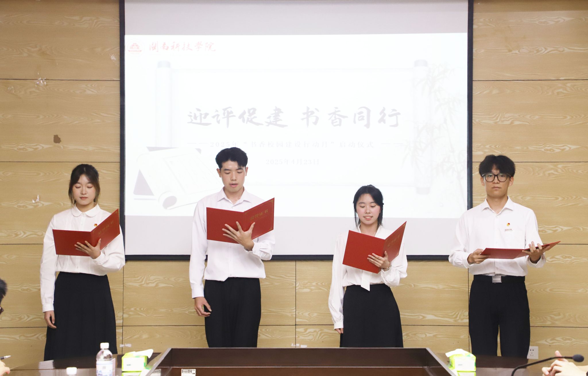 启动仪式上,宣读了活动方案、倡议书,观看了书香校园宣传视频,校大学生艺术团主持朗诵队还现场朗诵了《一路书香,一生阳光》等。