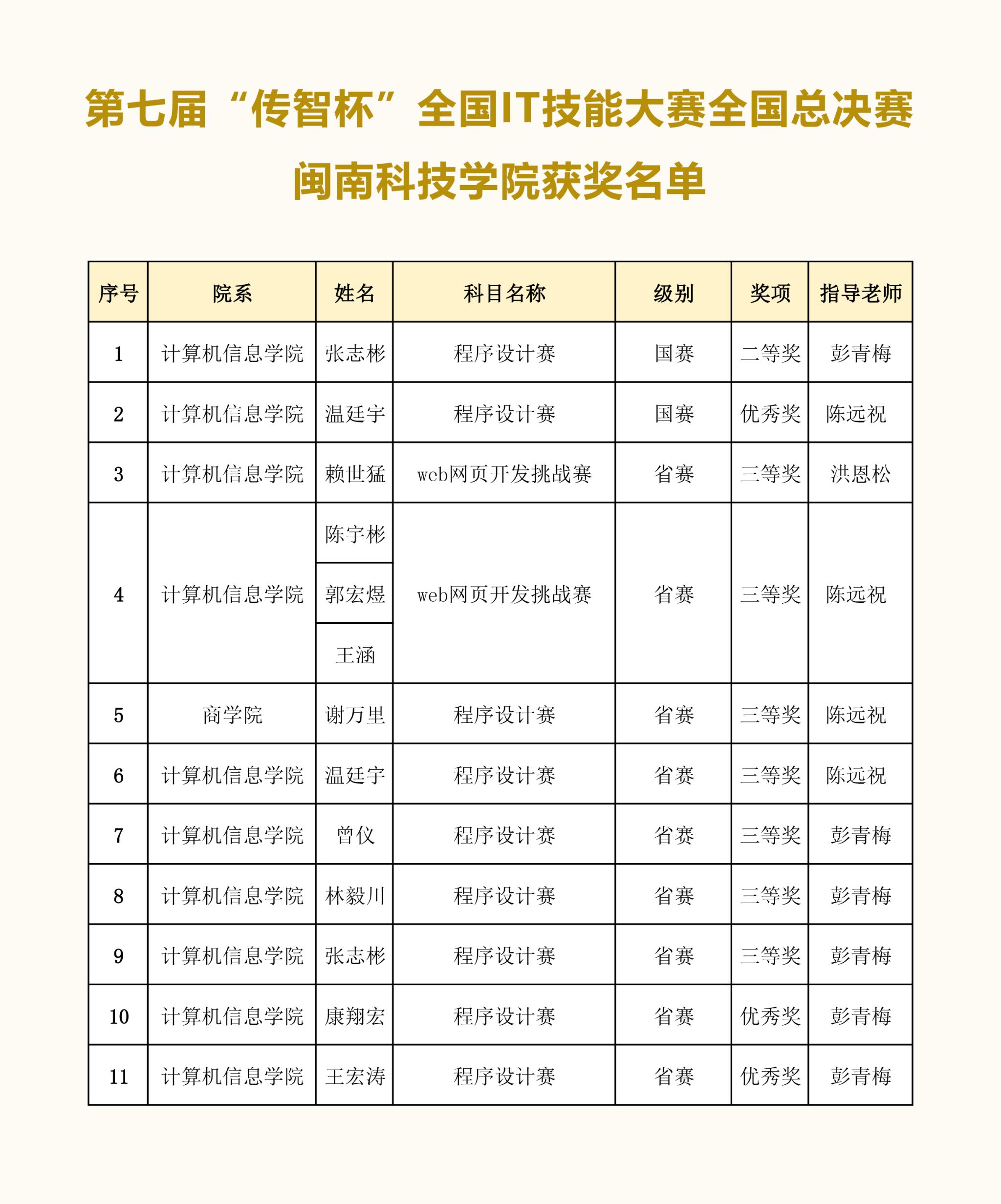 计算机信息学院将以此为契机,支持和鼓励学生参与更多高水平的学科竞赛,以赛促学、以学促用,深化教育教学改革、创新人才培养模式,进一步提高人才培养质量。