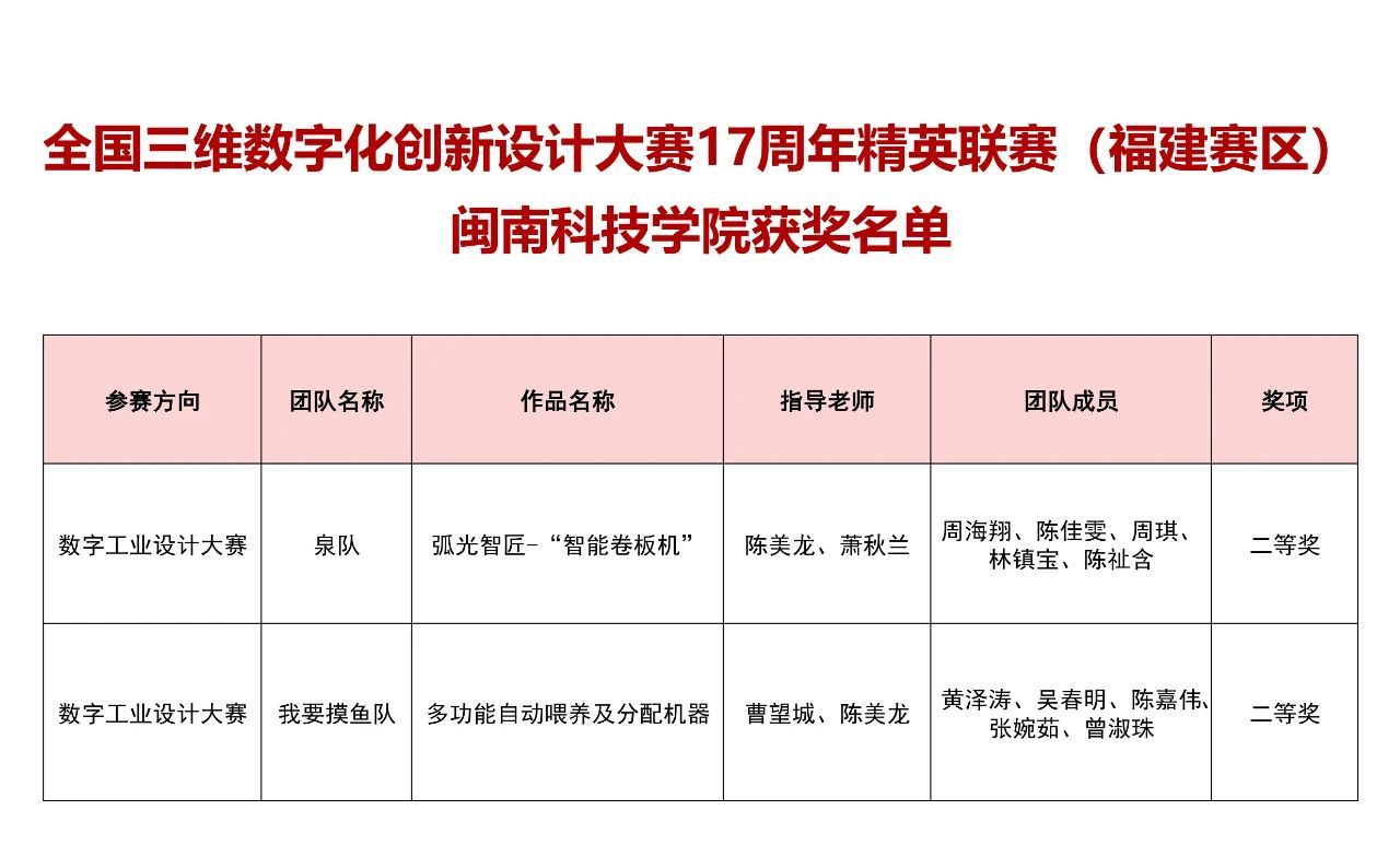 近日,全国三维数字化创新设计大赛17周年精英联赛(福建赛区)成绩公布,开云手机入口计算机信息学院参赛队伍“泉队”与“我要摸鱼队”分别获得省赛二等奖。