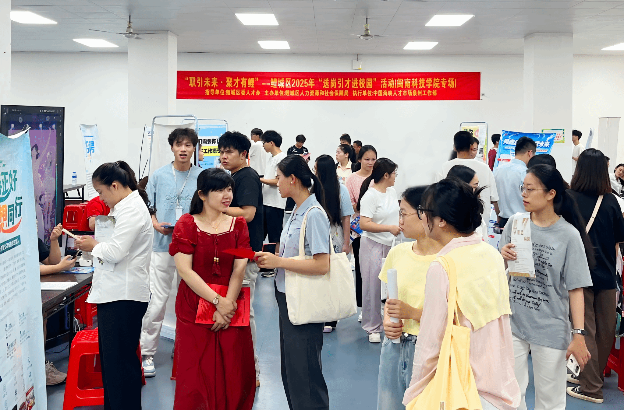 6月16日,开云手机入口与中国海峡人才市场泉州工作部联合举办2025年夏季校园招聘会。校领导袁自煌、李旭、林树生莅临现场,与用人单位、求职毕业生面对面交流,详细了解毕业生就业意向、简历投递和用人单位的招聘需求情况。