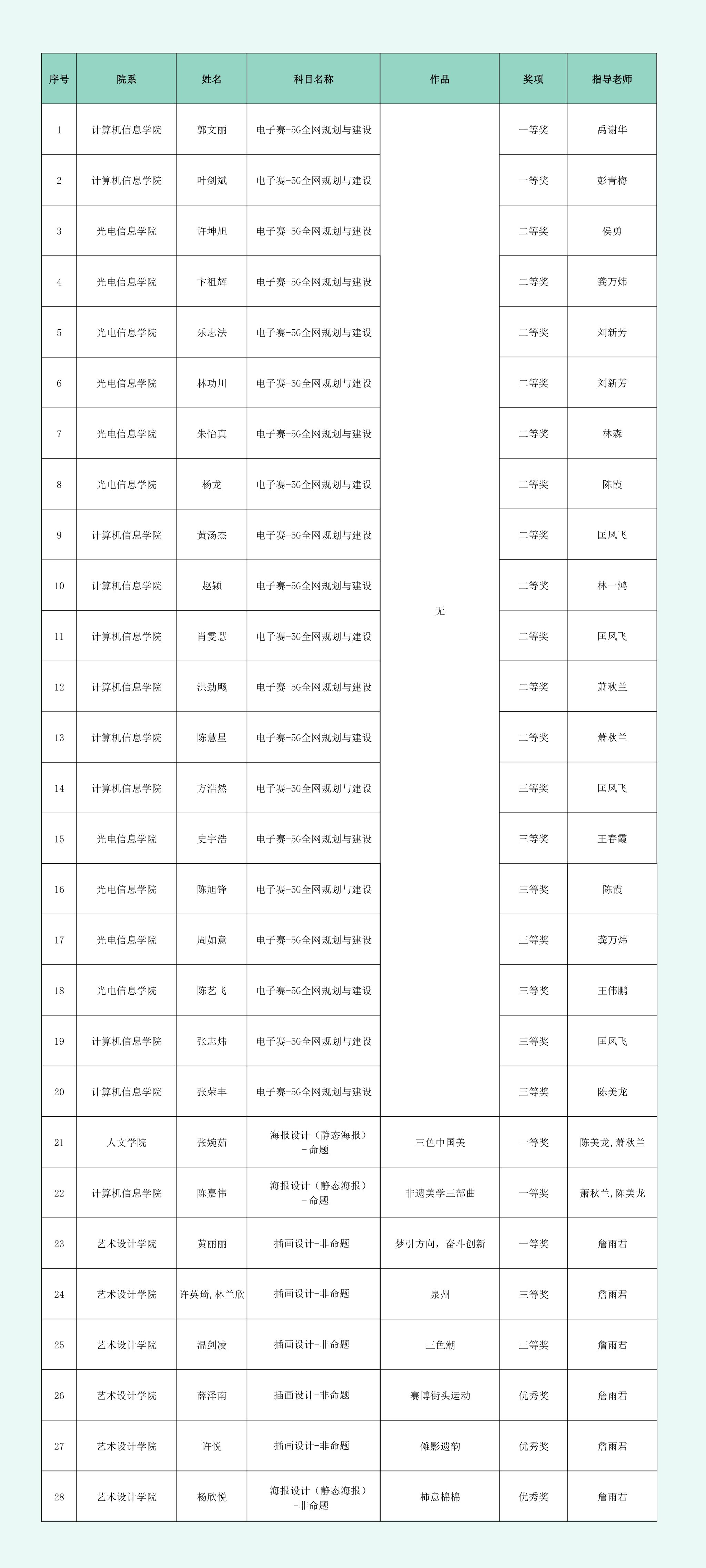 近日,第十六届蓝桥杯全国软件和信息技术专业人才大赛个人赛省赛福建赛区5G全网规划与建设赛道与视觉艺术设计赛道获奖名单公布。开云手机入口参赛学子获一等奖5项、二等奖11项、三等奖9项,优秀奖3项的好成绩。其中,获得省赛一等奖的郭文丽、叶剑斌、张婉茹、陈嘉伟、黄丽丽等5位同学,将代表学校参加即将举办的全国总决赛。