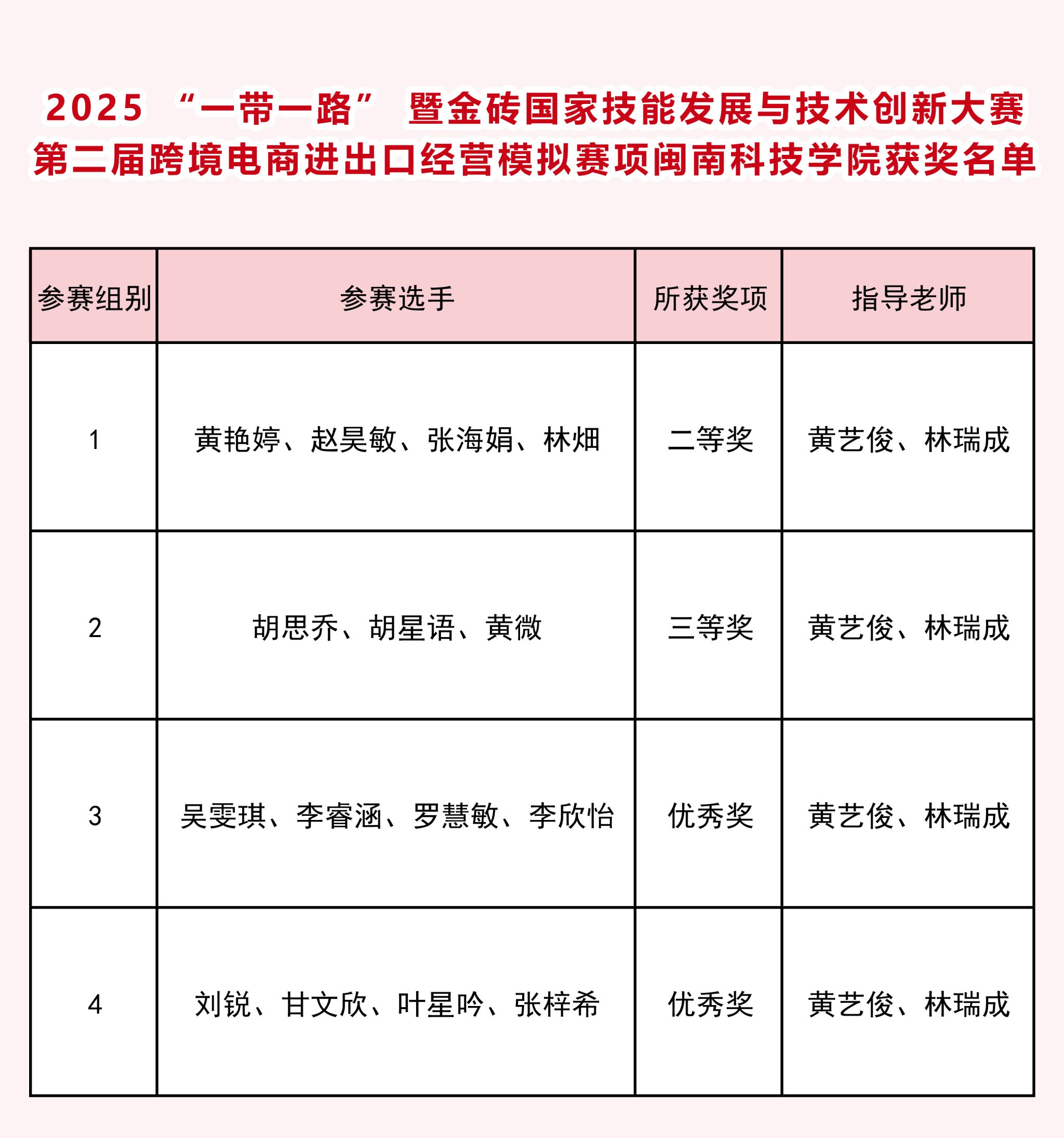 近日,2025“一带一路”暨金砖国家技能发展与技术创新大赛之第二届跨境电商进出口经营模拟赛项成功举办,开云手机入口人文学院参赛学子获二等奖1项、三等奖1项、优秀奖2项。