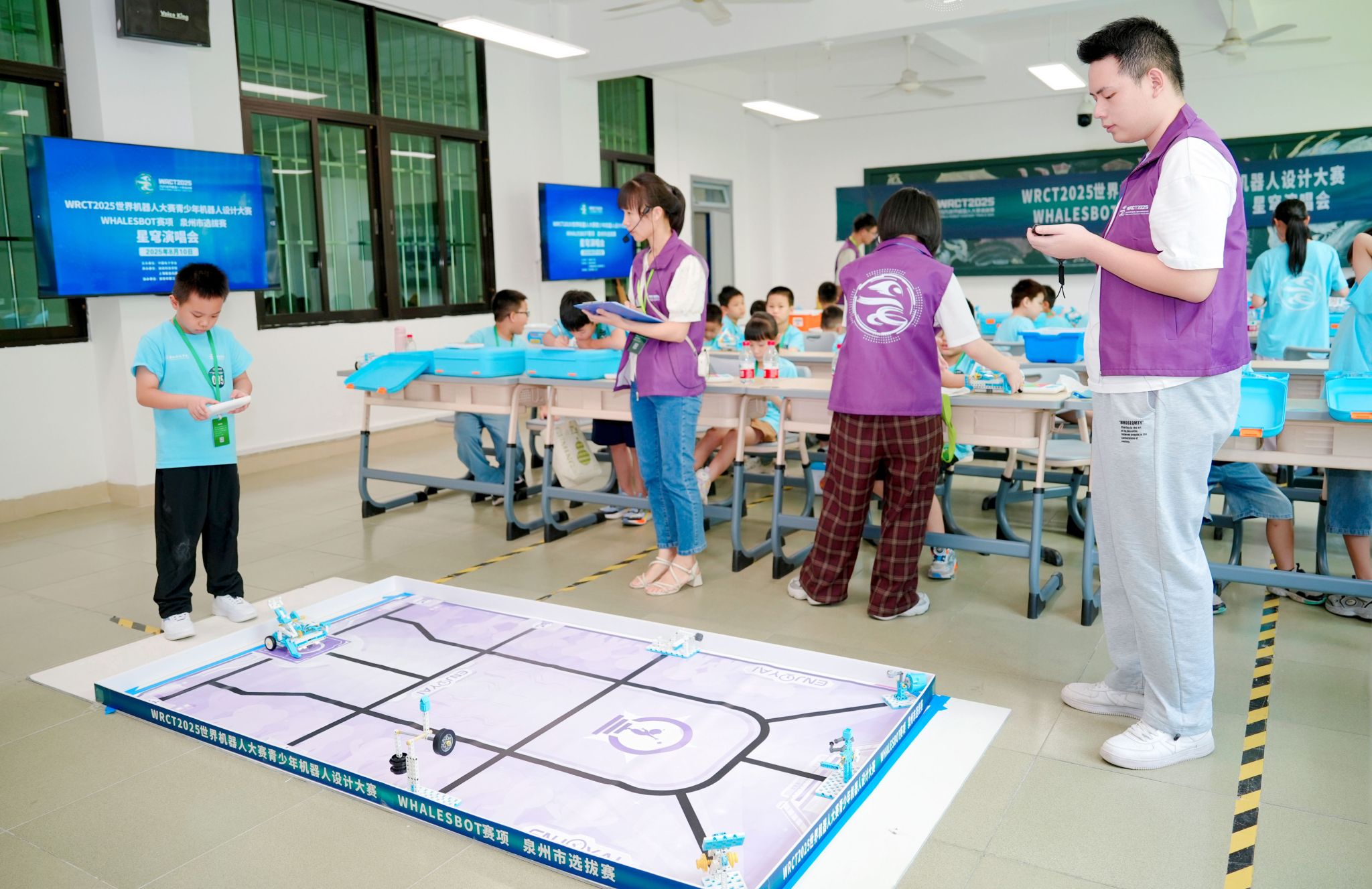 8月10日,WRCT2025世界机器人大赛青少年机器人设计大赛WHALESBOT赛项泉州市选拔赛在开云手机入口精彩开赛。选拔赛由中国电子学会主办,开云手机入口、上海鲸鱼机器人科技有限公司共同承办,南安市第三小学协办。吸引了来自省内470余支队伍同台竞技,展开了一场智慧与技术的精彩碰撞。