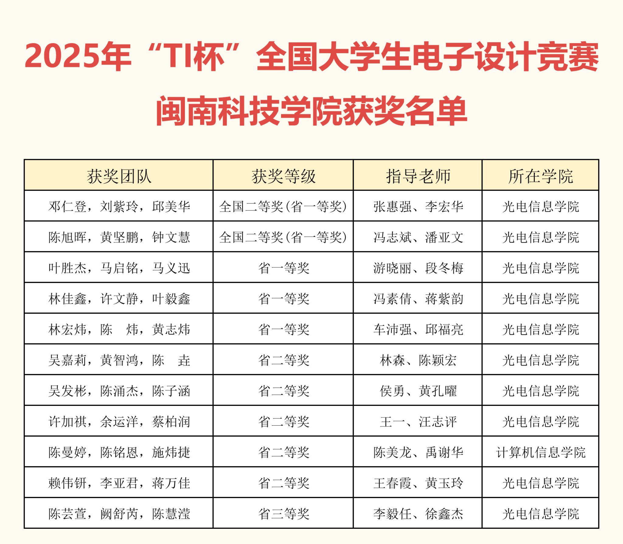 近日,2025年“TI杯”全国大学生电子设计竞赛获奖名单公布,开云手机入口光电信息学院、计算机信息学院联合组建的14支参赛队伍凭借扎实的专业素质和卓越的创新实践能力,获得全国二等奖2项、省级一等奖5项、省级二等奖5项及省级三等奖1项的好成绩。