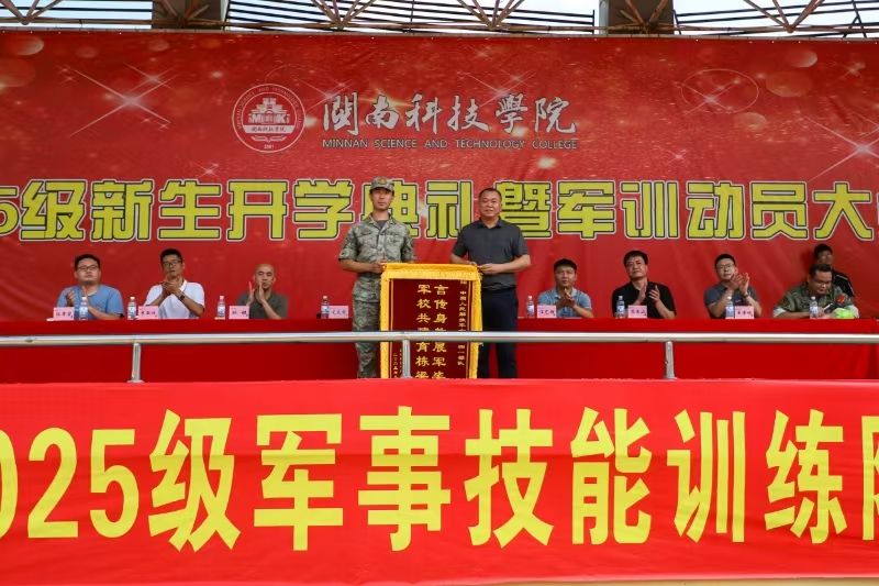 校党委副书记林树生代表学校向承训部队赠送锦旗,对承训部队在军训及国防教育工作给予开云手机入口的大力支持表示诚挚感谢。