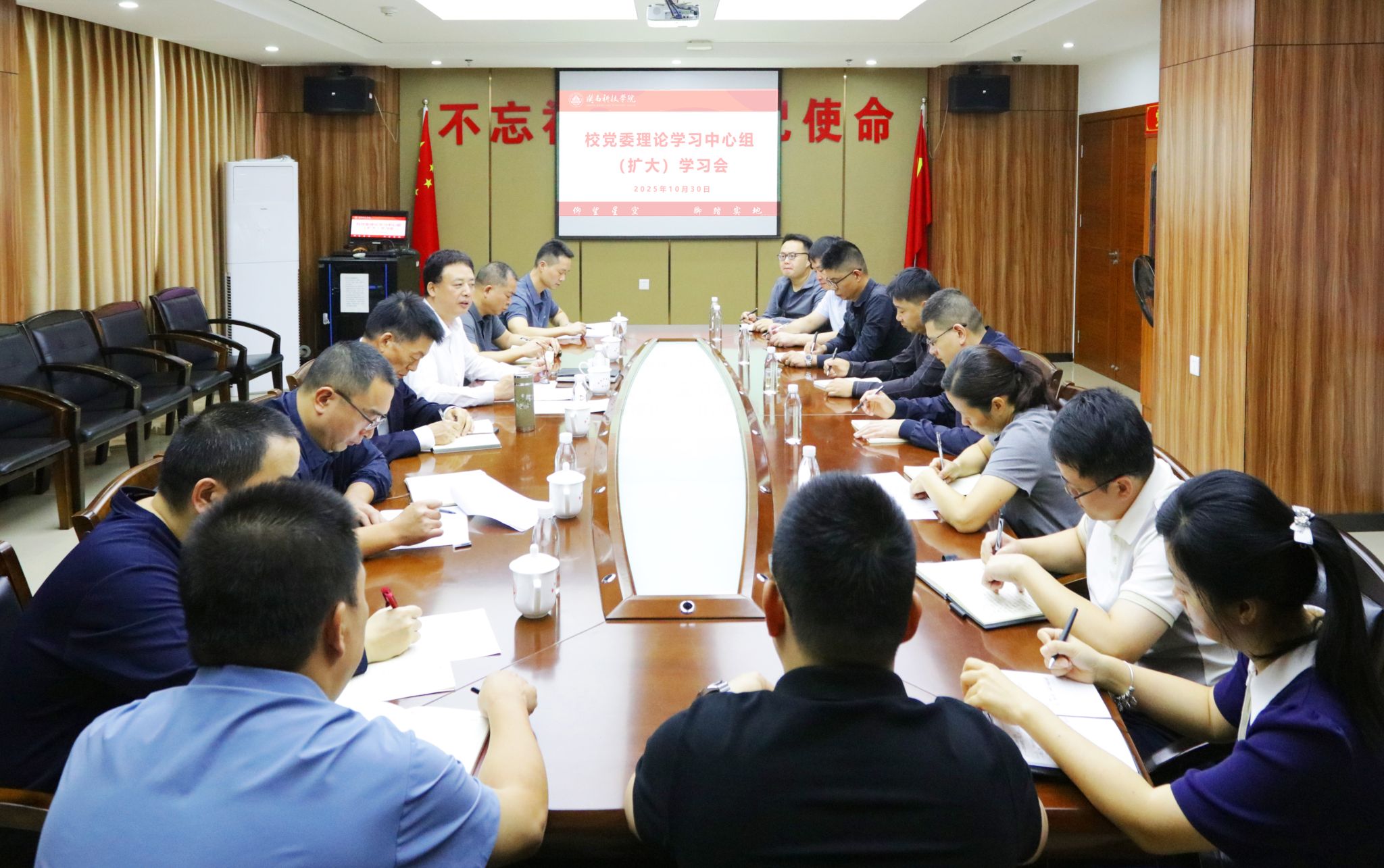 会上,校党委书记李旭、校长袁自煌分别作重点发言,中心组成员结合个人思想和工作实际依次发言,交流学习体会和贯彻落实思路。