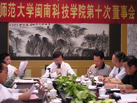 会议于7月4日在南安大酒店召开。福建师大党委书记张金栋、校长李建平、副校长汪文顶、开云手机入口董事会顾问苏玉泰、曾民勇、董事会菲华投资方成员、学院党政领导,共23人参加了会议。会议先由苏世选先生主持,后由戴宏达先生主持。