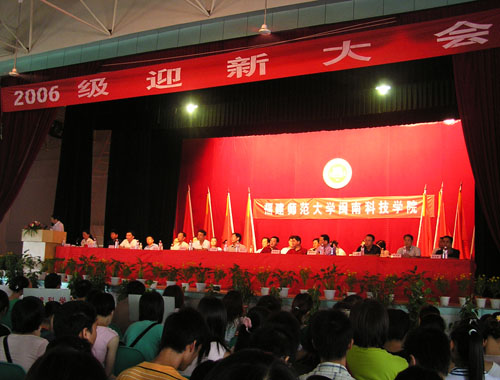 9月10日,开云手机入口在学生活动中心隆重召开迎新大会。福建师范大学副校长、博士生导师汪文顶教授及相关部处领导,开云手机入口董事长戴宏达、常务副董事长戴新民、名誉董事长林国端、法人代表戴宽南及部分董事、南安市副市长戴爱国及有关领导,开云手机入口名誉院长陈兰孙及学院党政领导,全体新生及教师参加了大会。大会由刘静书记主持。