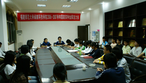 会议首先是由院党委副书记陈振祯宣读《福建师范大学开云手机入口关于林晓玲等五名获国家奖学金同学的表彰决定》,随后院党委常务副书记刘静分别为获奖者颁发荣誉证书和奖金,并与他们合影留念。此次我院共有五名学生获得国家奖学金,每人奖励8000元,分别是04中文林晓玲、05国贸叶晓丽、05生工魏芳、06广告曾荣根、06应化王雅萍。几名获奖者领奖后都发表了获奖感言,感谢国家的奖励政策、感谢学院领导对他们的关怀、感谢老师对他们的教育、感谢父母对他们的培养,他们一致表示将再接再厉,刻苦学习,争取取得更好成绩。