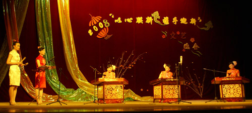出席今天晚会的领导和嘉宾有康美镇党政领导、学院党政领导、学院法人代表戴宽南先生、董事长助理戴景星先生。学院法人代表戴宽南先生在晚会前代表董事会和学院党政致新年贺词。