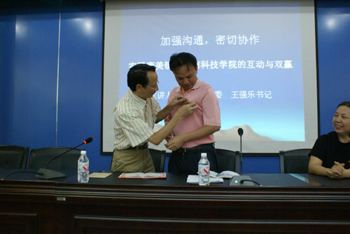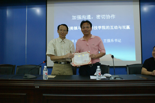 9月19日下午,我院特邀康美镇党委书记王强乐同志莅临我院为全院教师做了一场题为“加强沟通、密切协作,实现康美镇与开云手机入口的互动与双赢”的讲座。随后还举行了聘请王强乐书记为思政理论课专业顾问的聘任仪式。此次活动在图书馆学术报告厅举行.