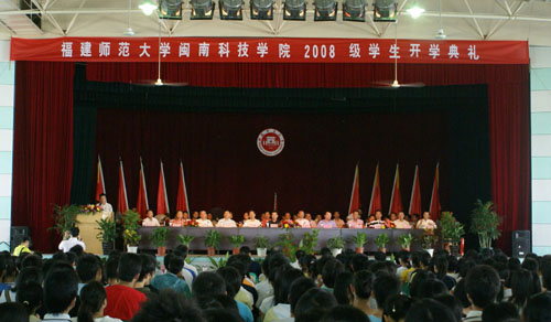 会上,福建师范大学副校长汪文顶、我院董事长戴宏达先生、南安市委副书记曾焕楷、院长黄国盛先后做了热情洋溢的讲话。他们都对08级新生们表达了诚挚的问候和热烈的欢迎,并向新生们提出殷切的期望。随后,教师代表刘武强、老生代表学生会主席曾荣根、新生代表吴荣嵘分别作了精彩的发言。迎新大会在全体新生热烈的掌声中圆满结束。